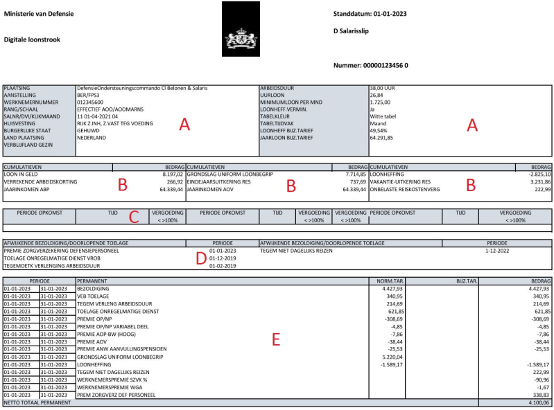 Hieronder een PDF bestand met een uitleg over hoe de loonstrook van defensie is ingedeeld